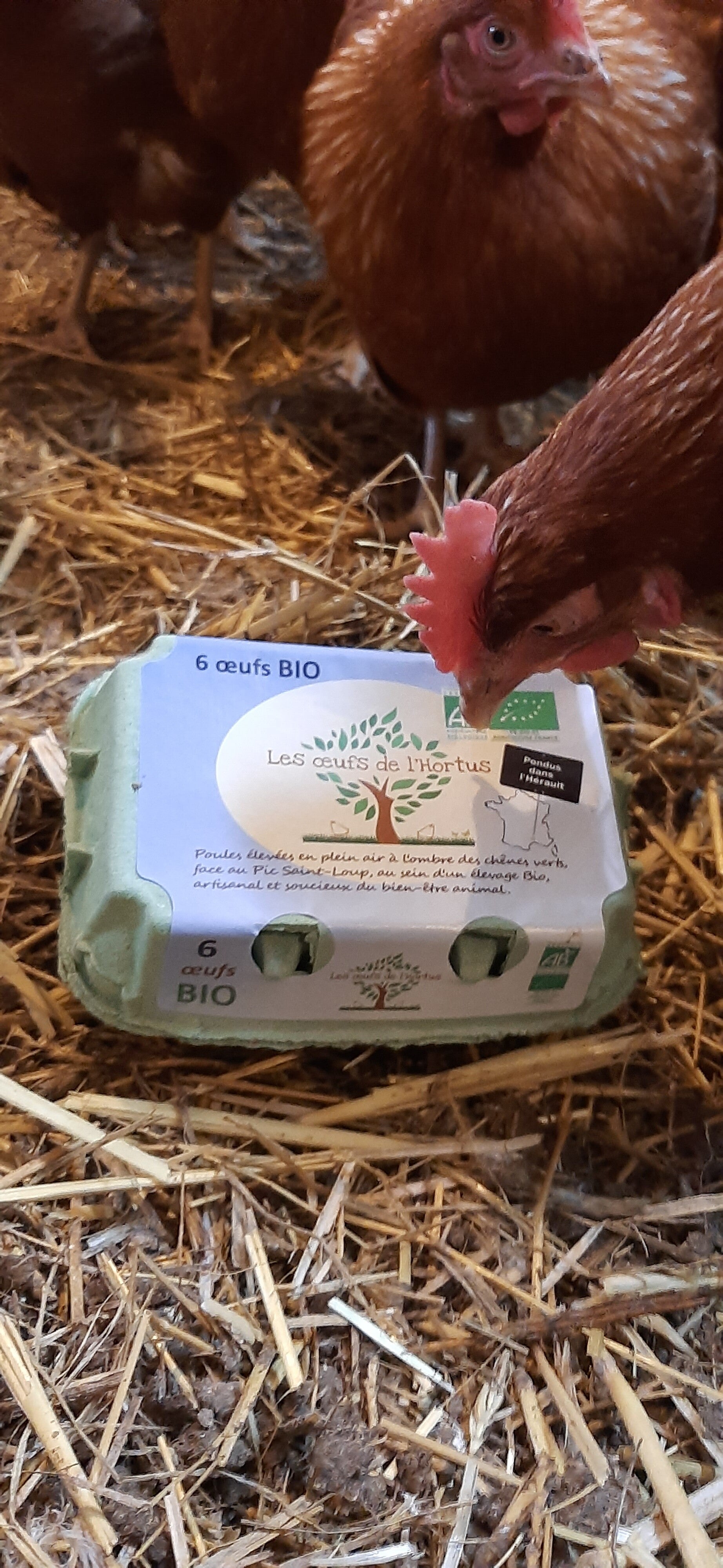 Nos œufs Bio locaux, conditionnés sur place et livrés par nos soins dans un rayon de 40km.